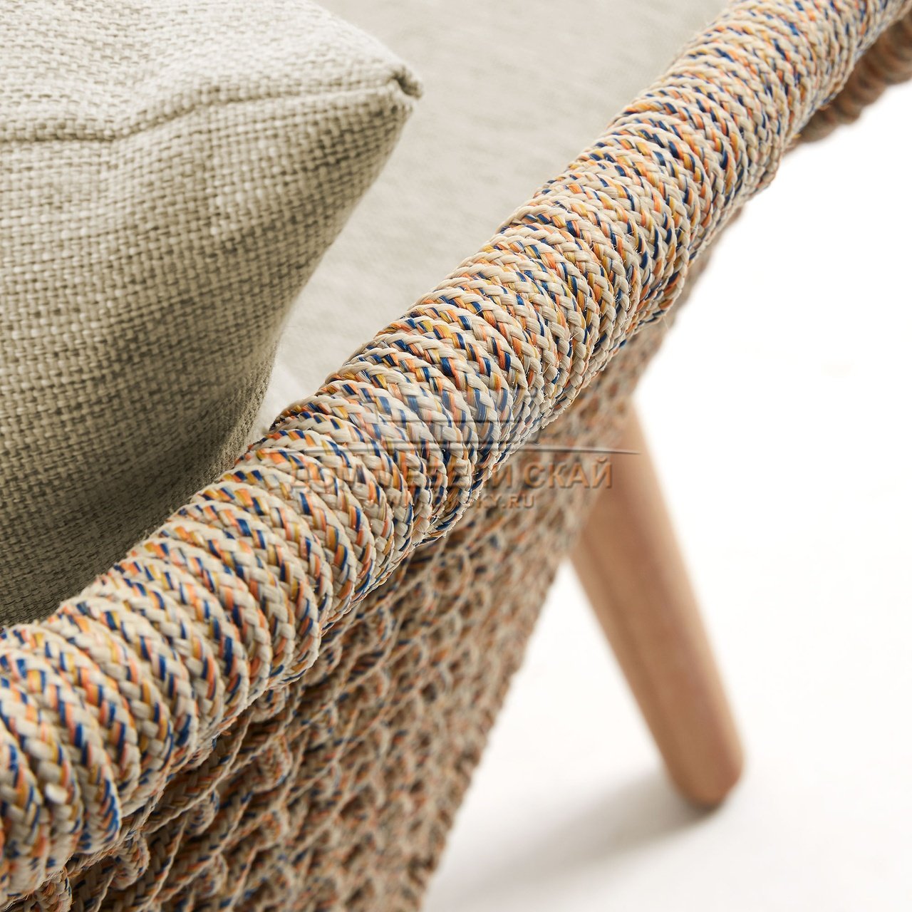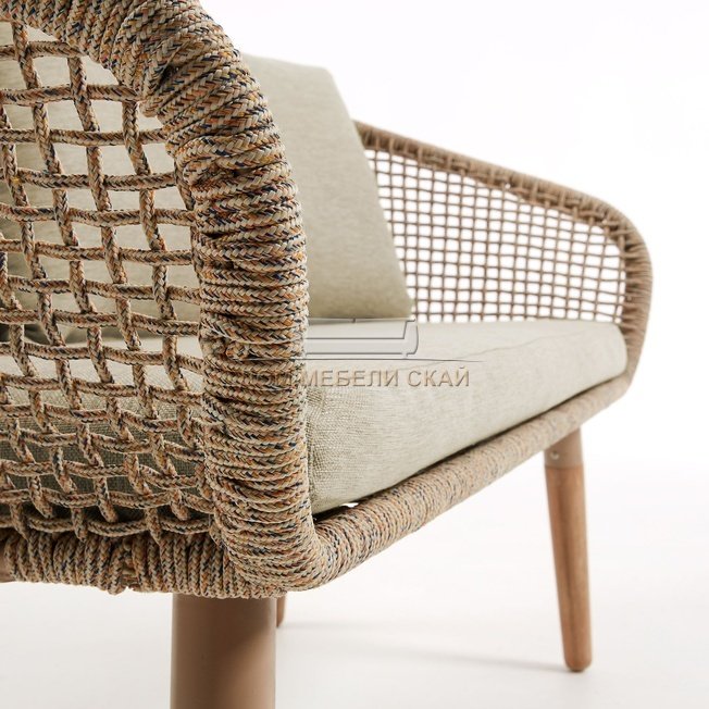 | Материал каркаса дивана | натуральный и долговечный массив эвкалипта, 4 слоя защитного лака от ультрафиолетового излучения, спинка и боковины выполнены плетением полиэфирной веревкой | |||
