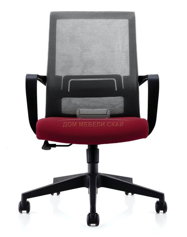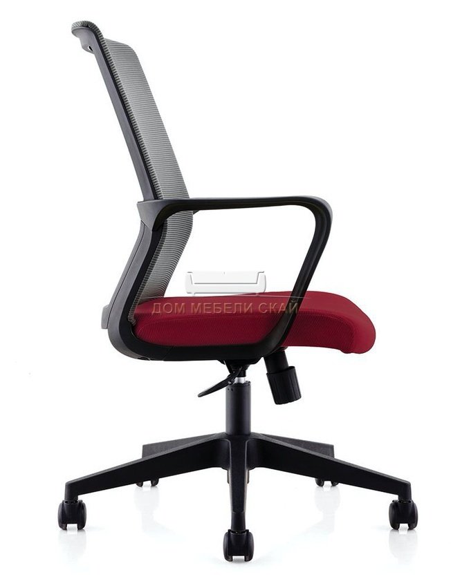 Кресло офисное Интер LB, черный пластик/серая сетка/вишневая ткань