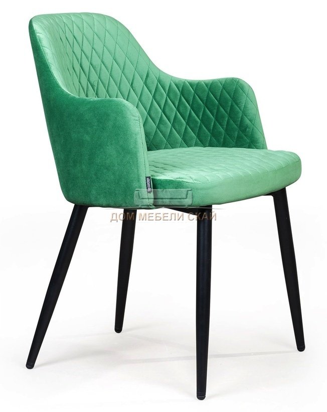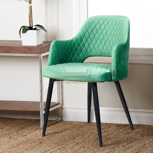 Стул с подлокотниками William, бархат нефритово-зеленого цвета/ромб