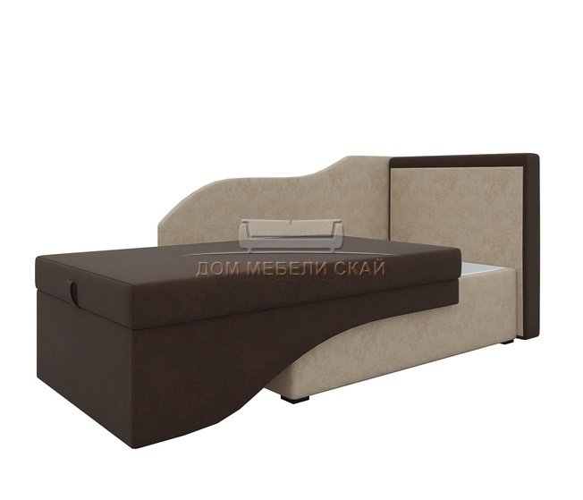 Кушетка правая Гармония, коричневая/бежевая/микровельвет