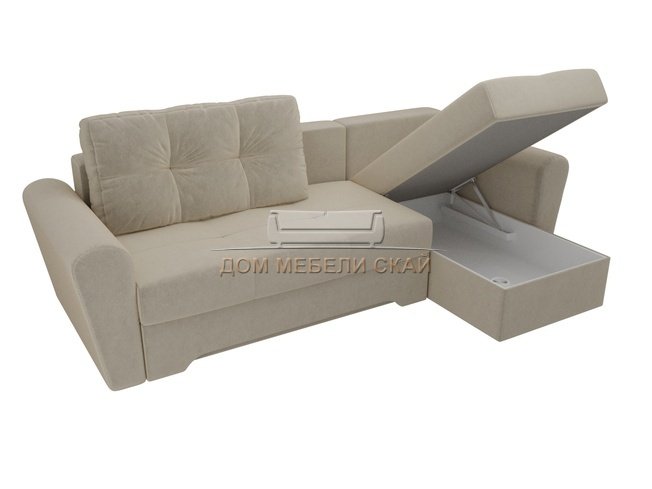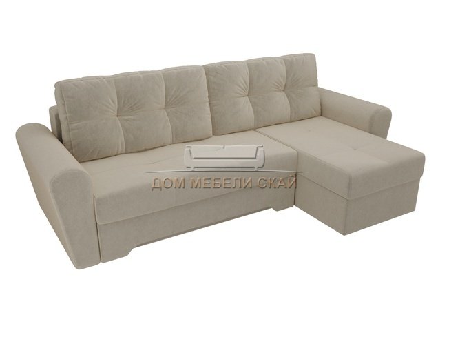 Угловой диван-кровать правый Амстердам, бежевый/микровельвет