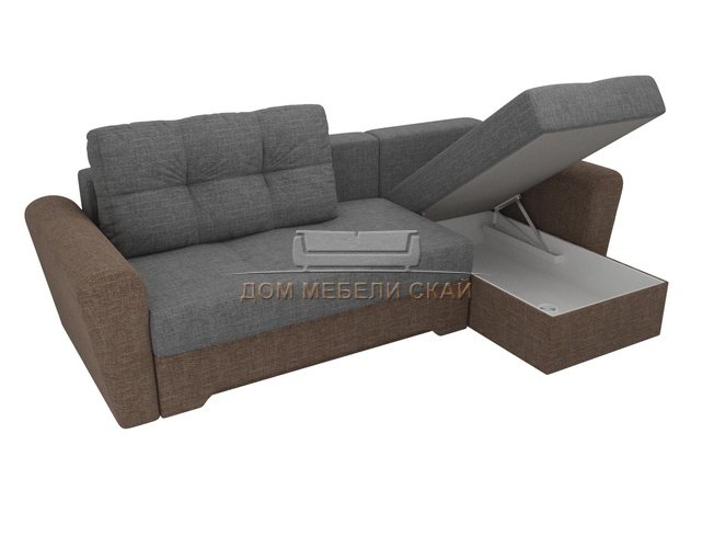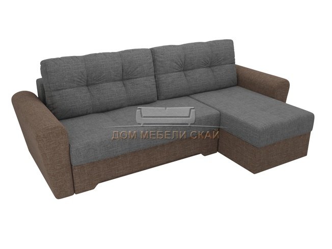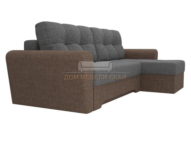 Угловой диван-кровать правый Амстердам, серый/коричневый/рогожка
