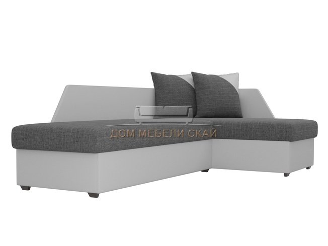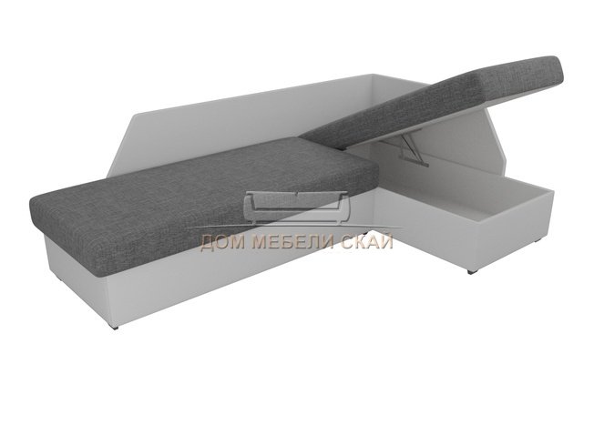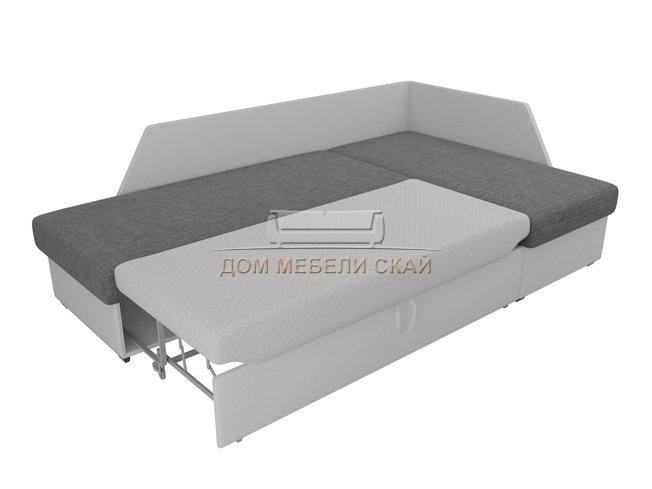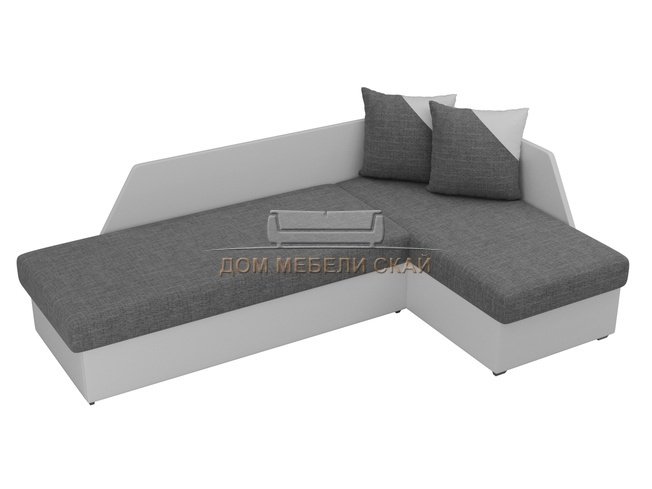 Угловой диван-кровать правый Андора, серый/белый/рогожка/экокожа