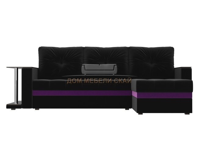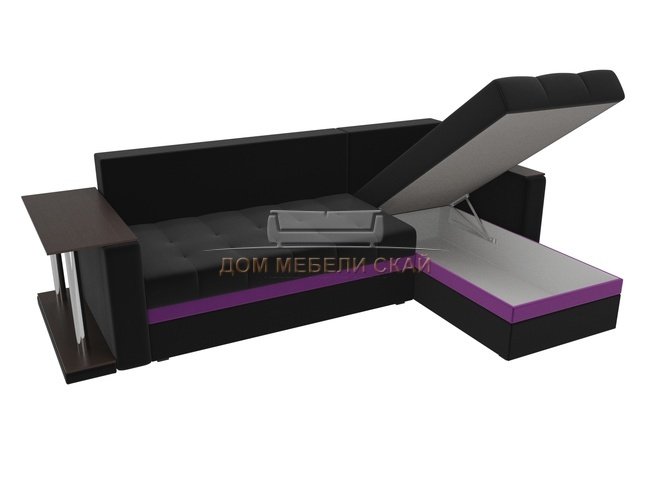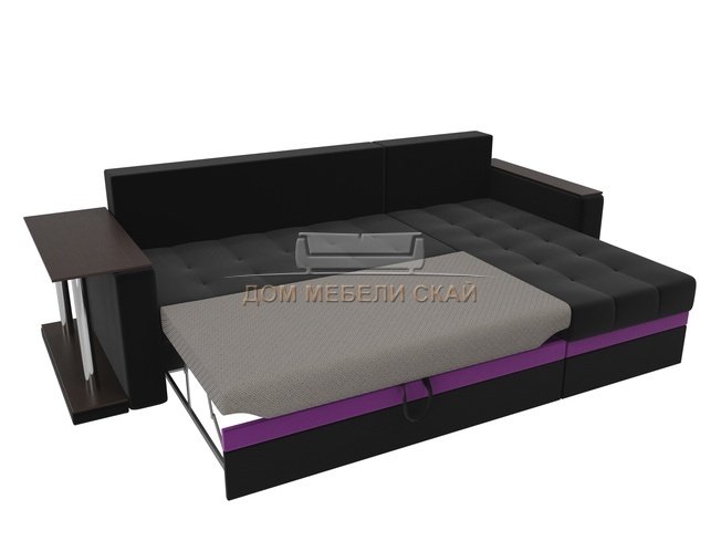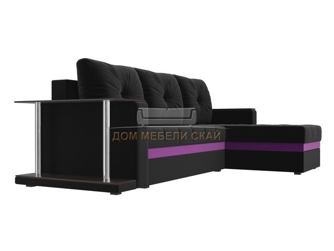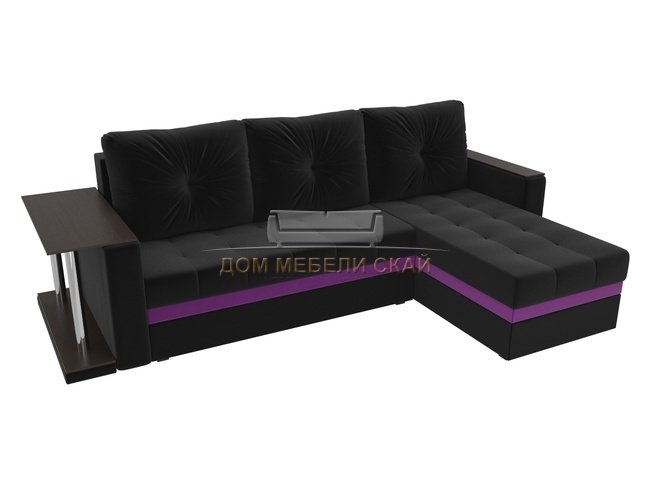 Угловой диван-кровать правый Атланта М, черный/микровельвет