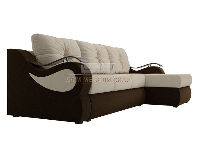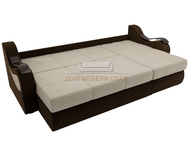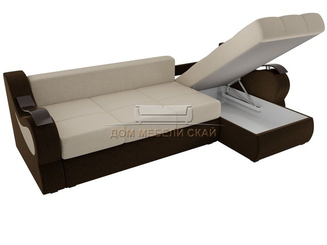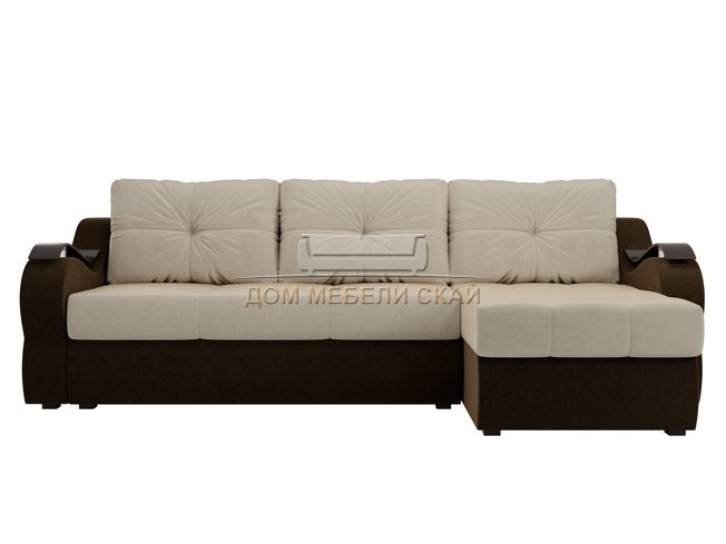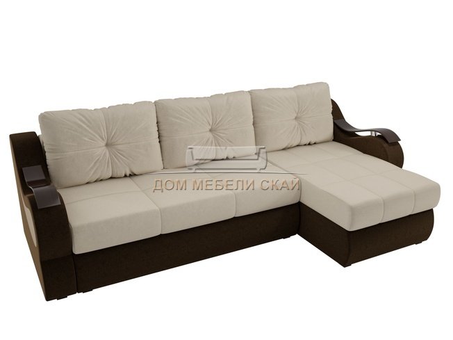 Угловой диван-кровать правый Меркурий, бежевый/коричневый/микровельвет