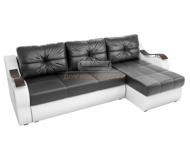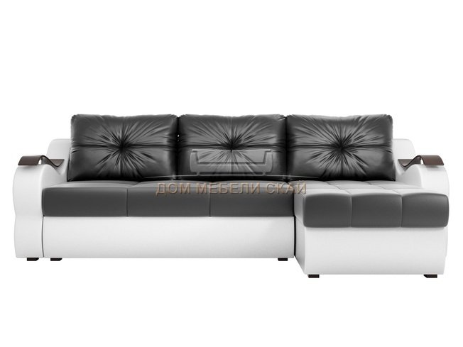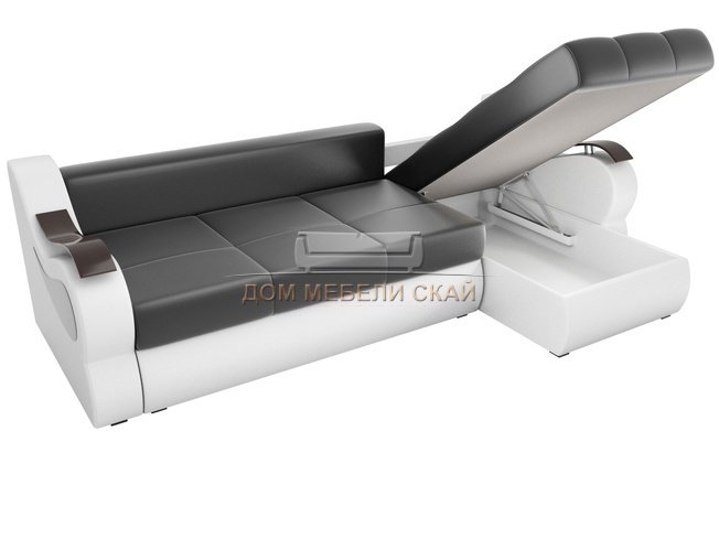 Угловой диван-кровать правый Меркурий, черный/белый/экокожа