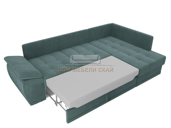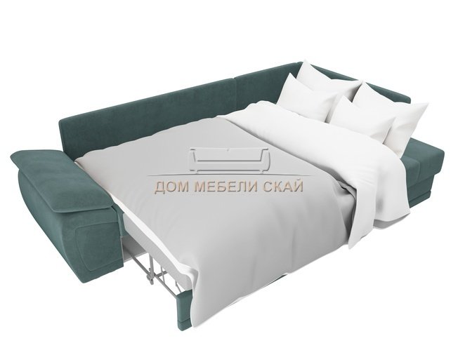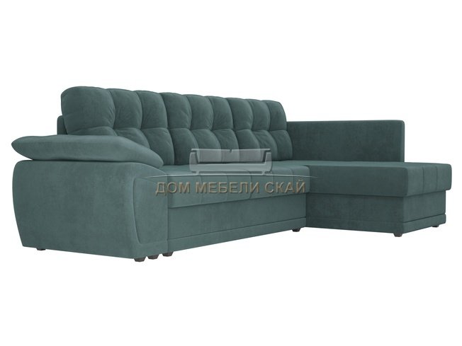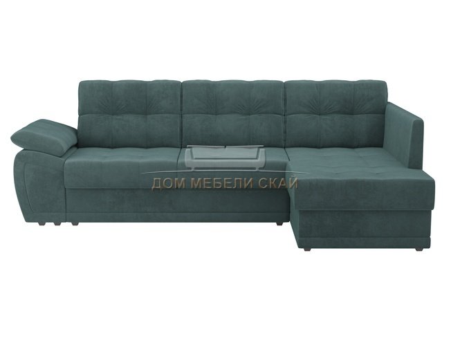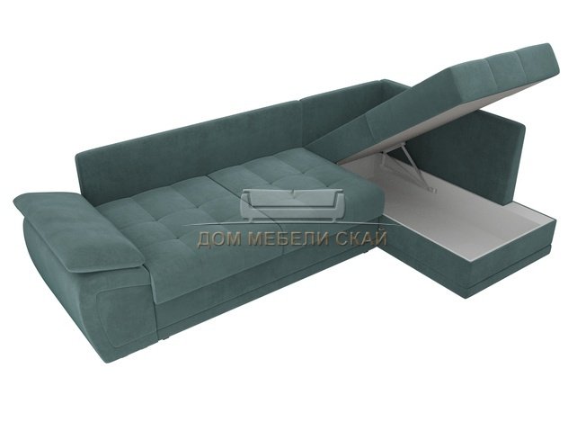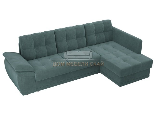 Угловой диван-кровать правый Нэстор прайм, бирюзовый/велюр