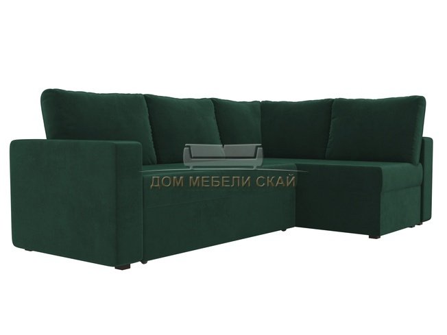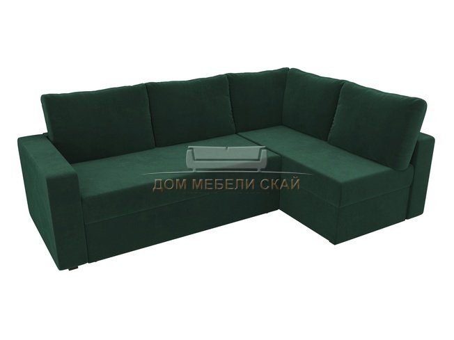 Угловой диван-кровать правый Оливер, зеленый/велюр