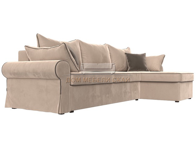 Угловой диван-кровать правый Элис, бежевый/велюр