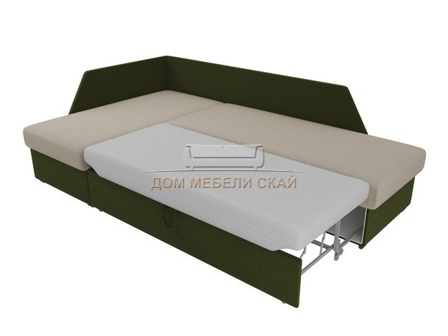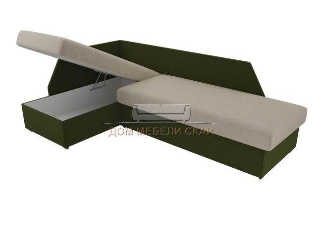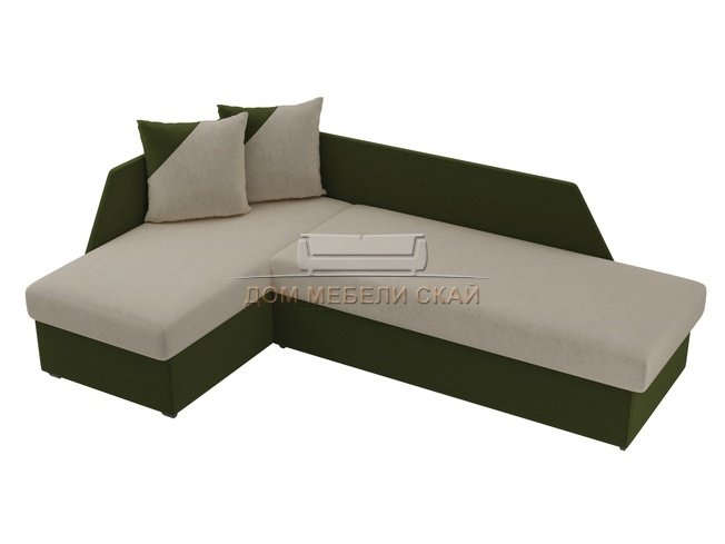Угловой диван-кровать левый Андора, бежевый/зеленый/микровельвет