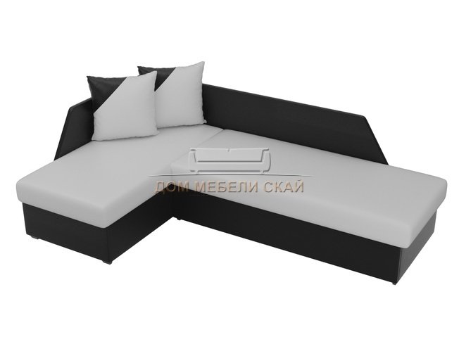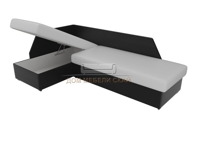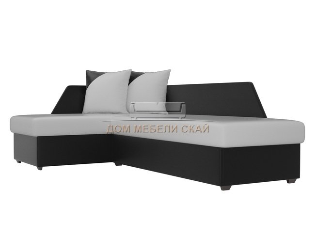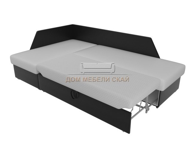 Угловой диван-кровать левый Андора, белый/черный/экокожа