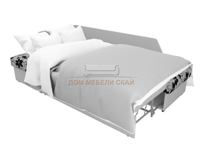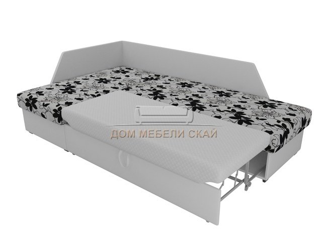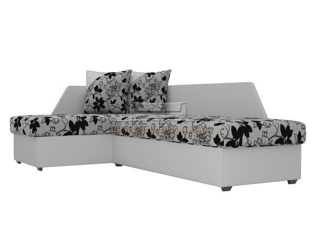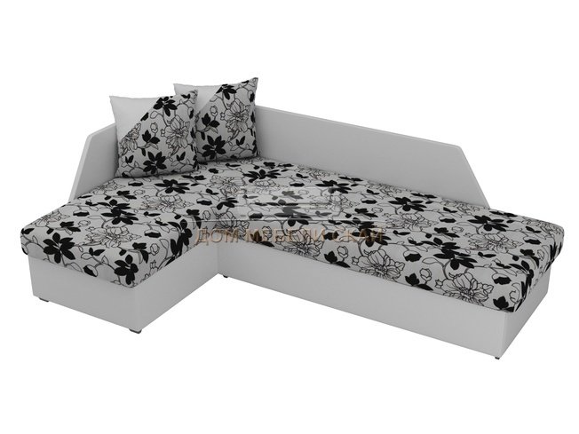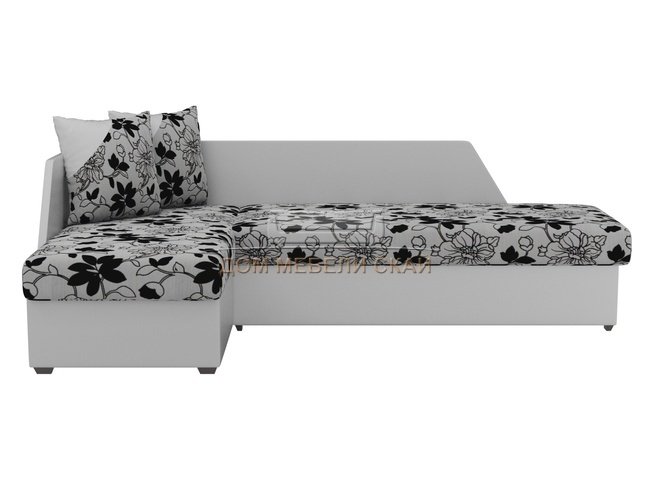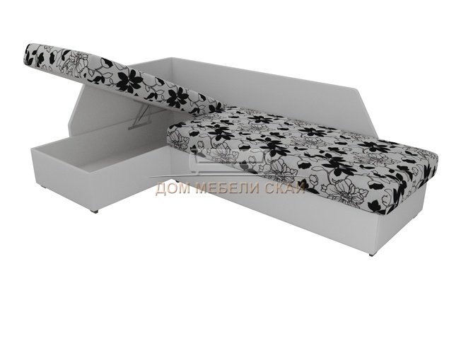 Угловой диван-кровать левый Андора, цветы/белый/флок на рогожке/экокожа
