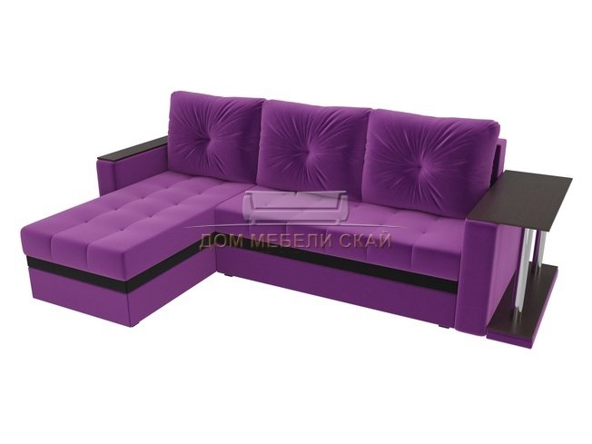 Угловой диван-кровать левый Атланта М, фиолетовый/микровельвет