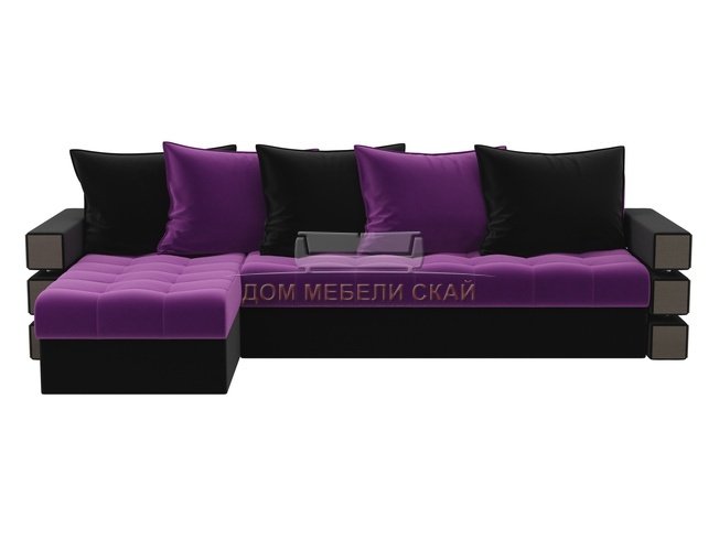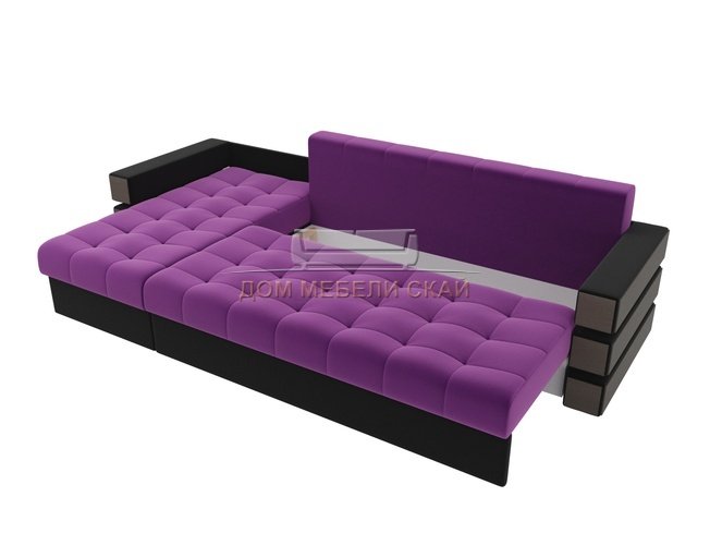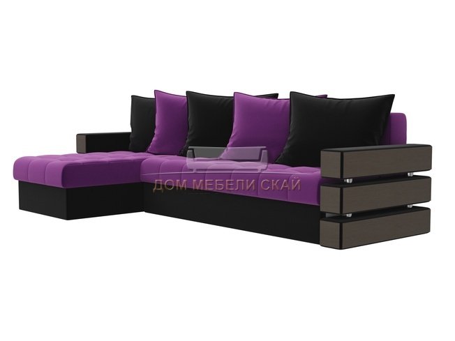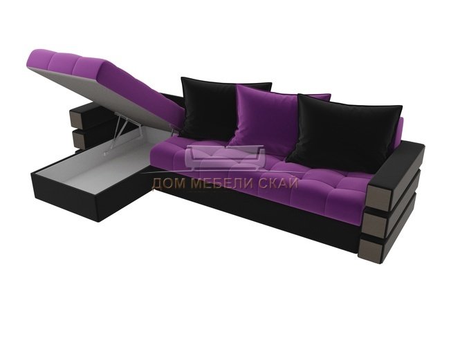 Угловой диван-кровать левый Венеция, фиолетовый/черный/микровельвет
