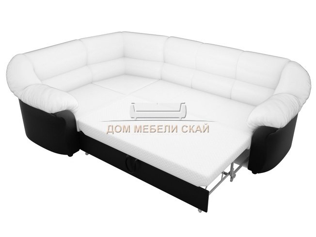 Угловой диван-кровать левый Карнелла, белый/черный/экокожа