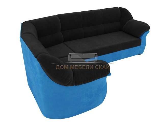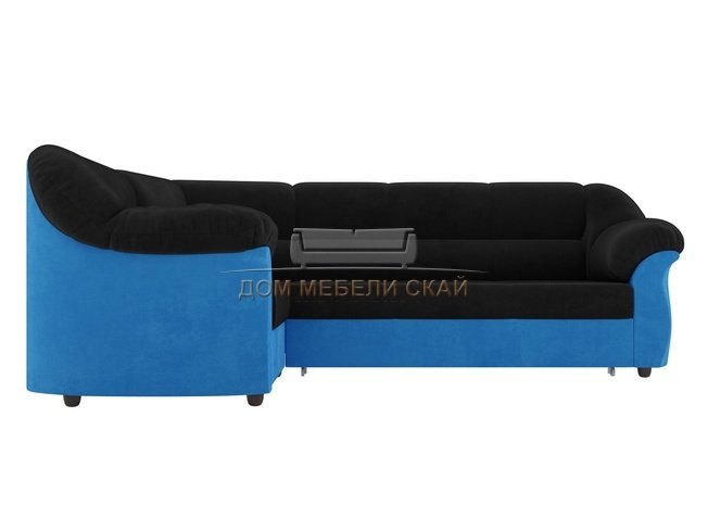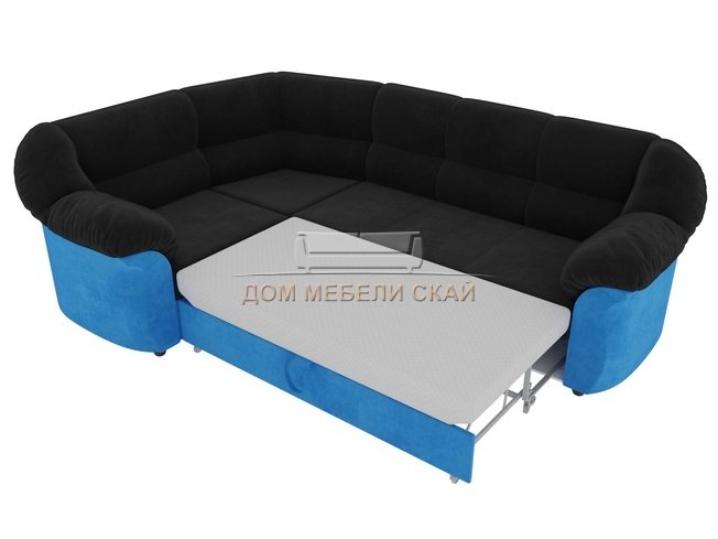 Угловой диван-кровать левый Карнелла, черный/голубой/велюр