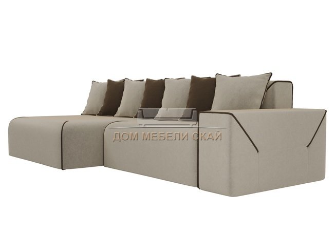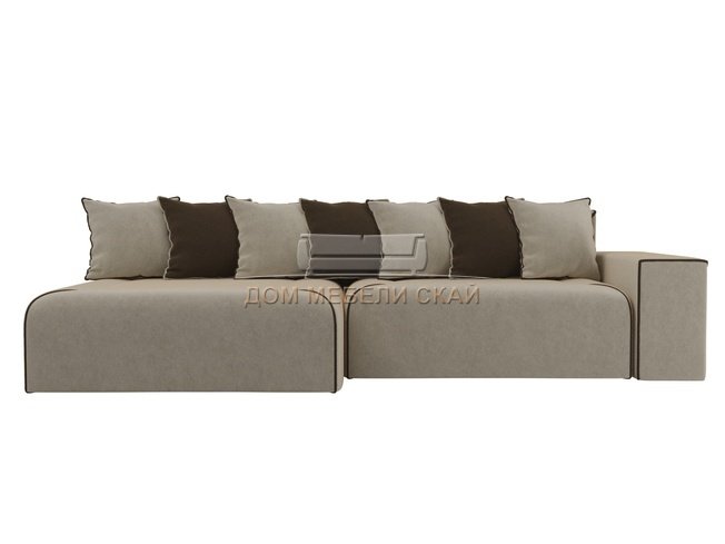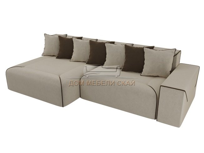 Угловой диван-кровать левый Кёльн, бежевый/коричневый/микровельвет