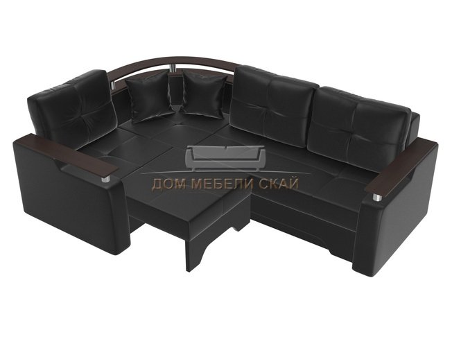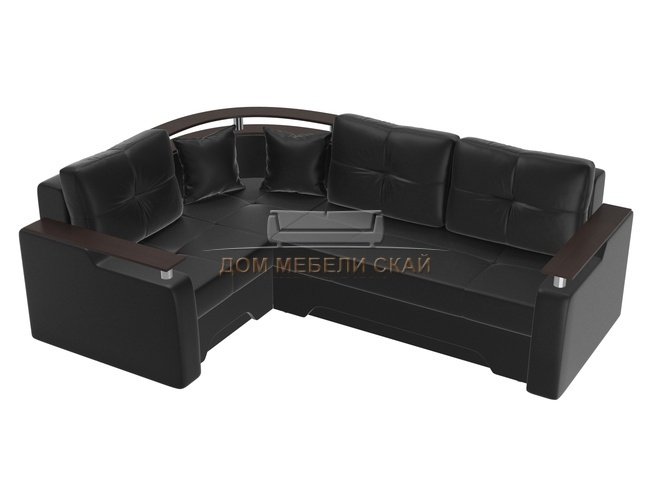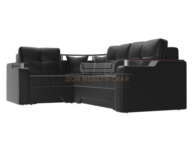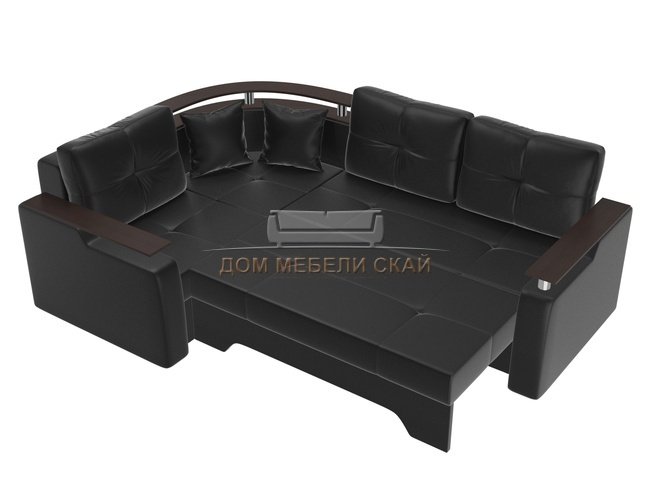 Угловой диван-кровать левый Комфорт, черный/экокожа