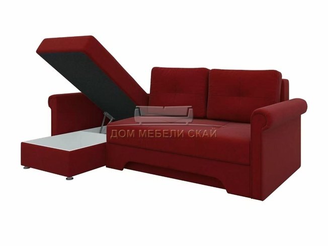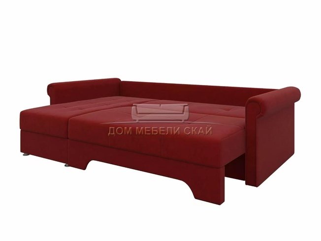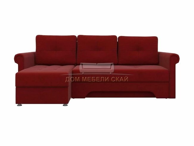 Угловой диван-кровать левый Леон, красный/микровельвет