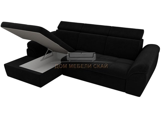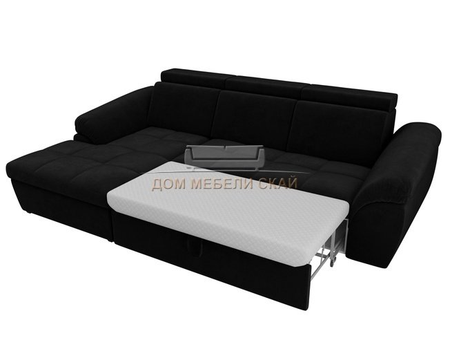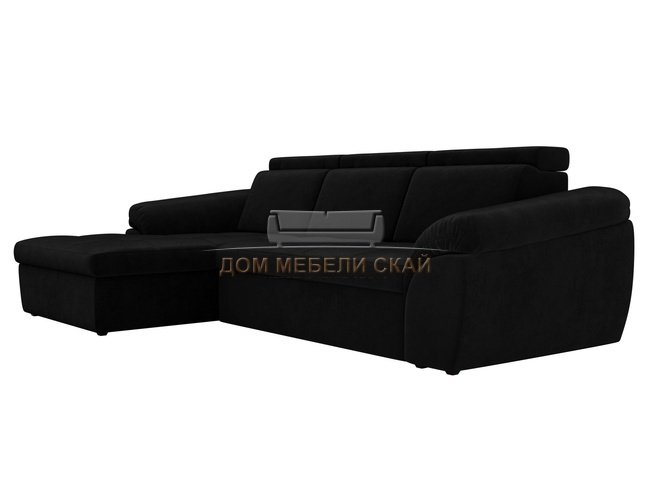 Угловой диван-кровать левый Мисандра, черный/велюр