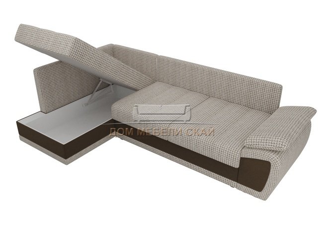 Угловой диван-кровать левый Нэстор прайм, корфу 02/коричневый/корфу/микровельвет