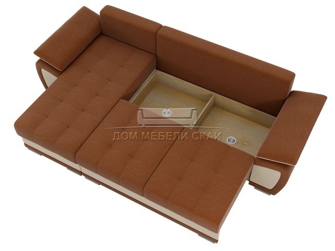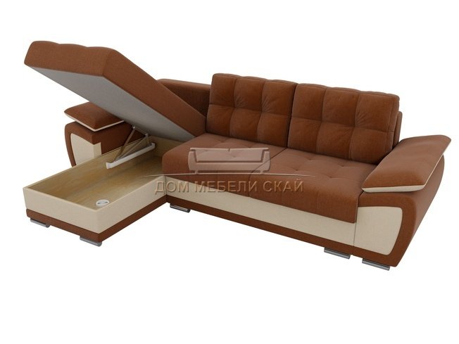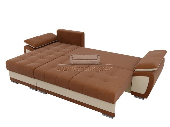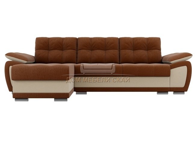 Угловой диван-кровать левый Нэстор, коричневый/бежевый/рогожка