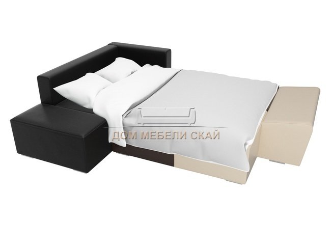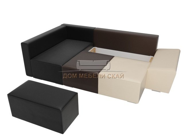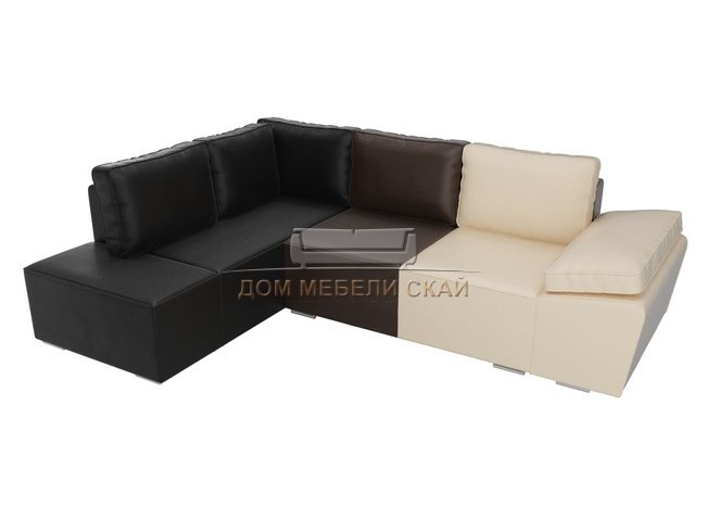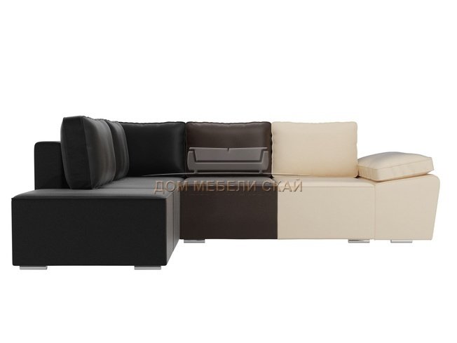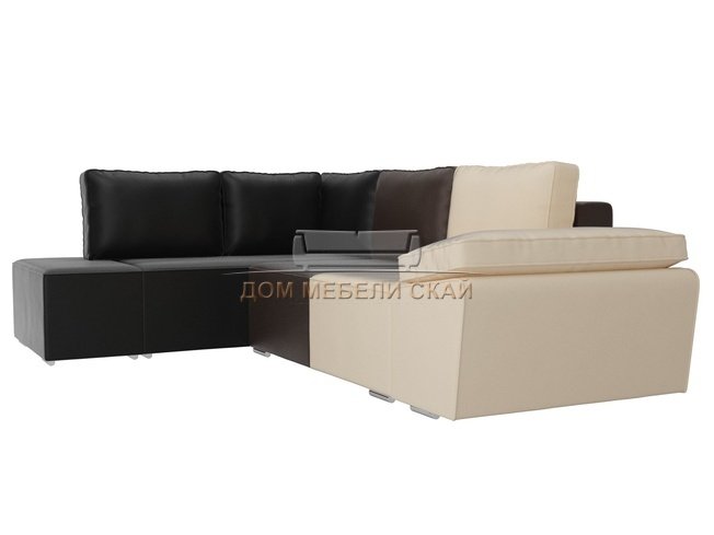 Угловой диван-кровать левый Хавьер, бежевый/коричневый/черный/экокожа
