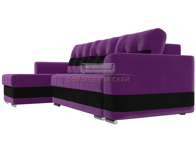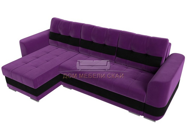 Угловой диван-кровать левый Честер, фиолетовый/черный/микровельвет