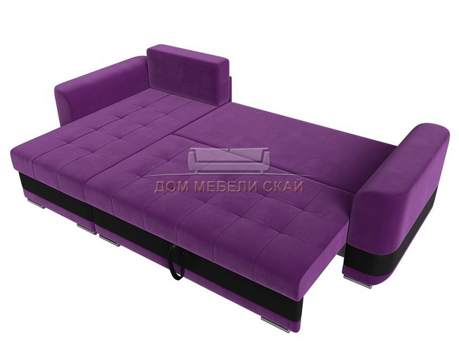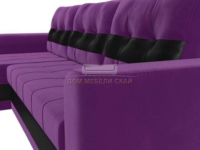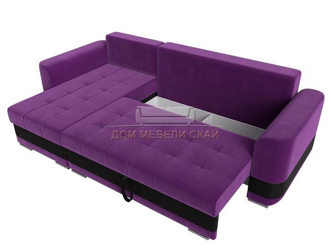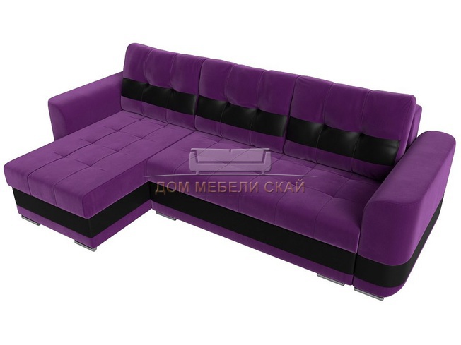 Угловой диван-кровать левый Честер, фиолетовый/черный/микровельвет/экокожа
