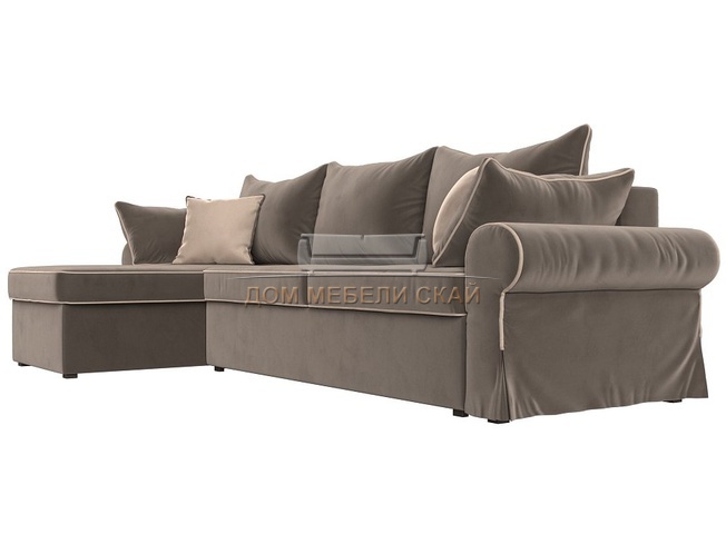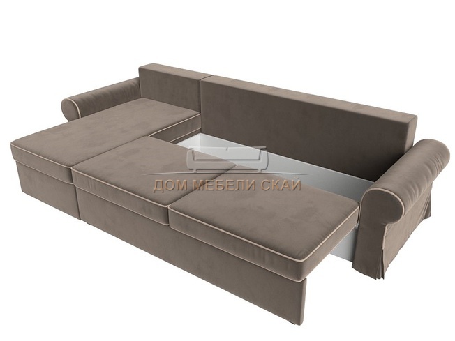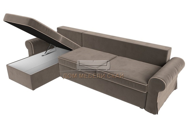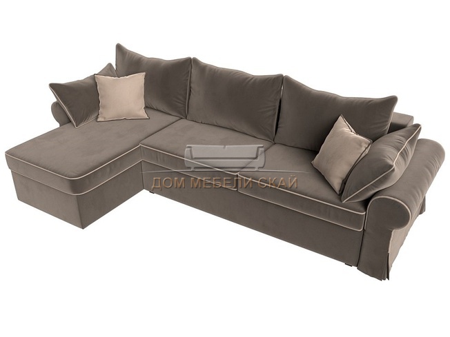 Угловой диван-кровать левый Элис, коричневый/велюр