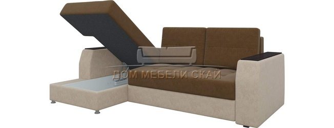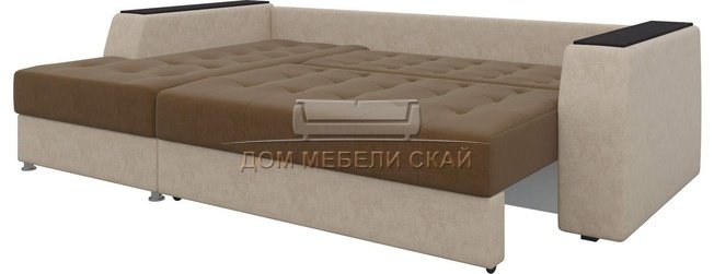 Угловой диван-кровать левый Эмир Б/С, коричневый/бежевый/микровельвет
