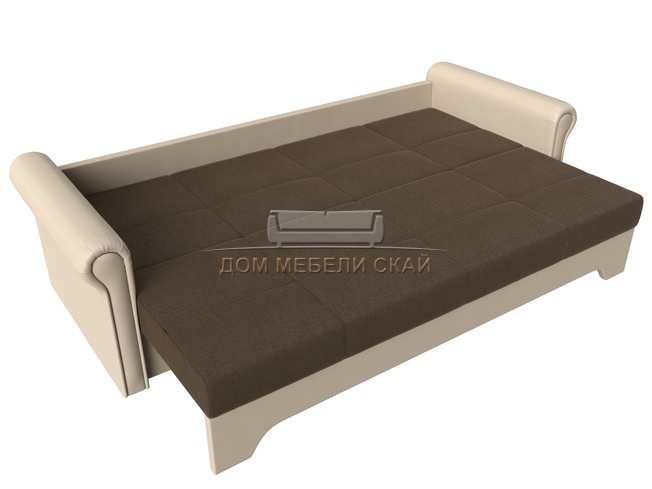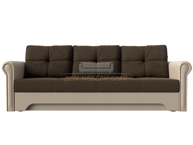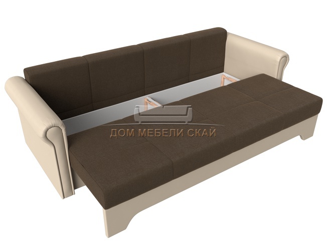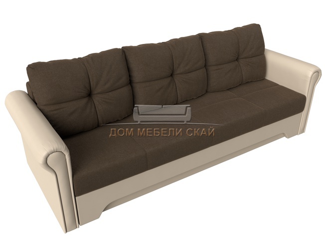 Диван-кровать Европа, коричневый/бежевый/рогожка/экокожа