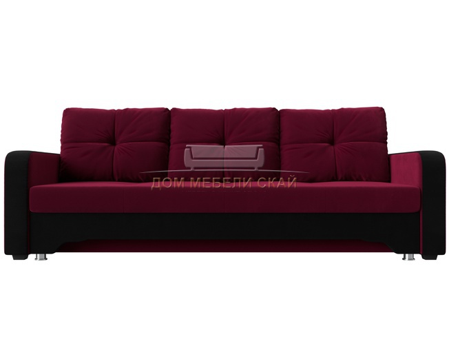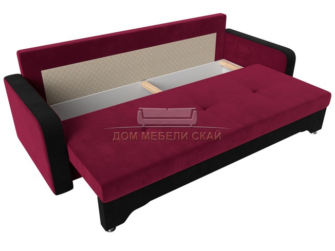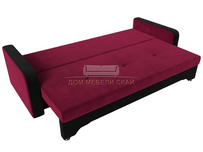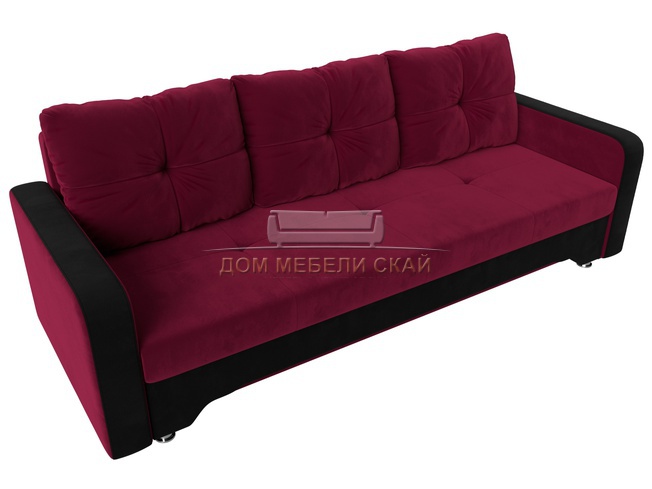 Диван-кровать Ник-3, бордовый/черный/микровельвет