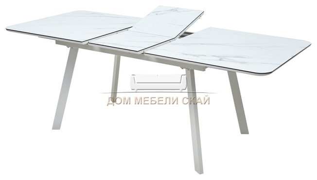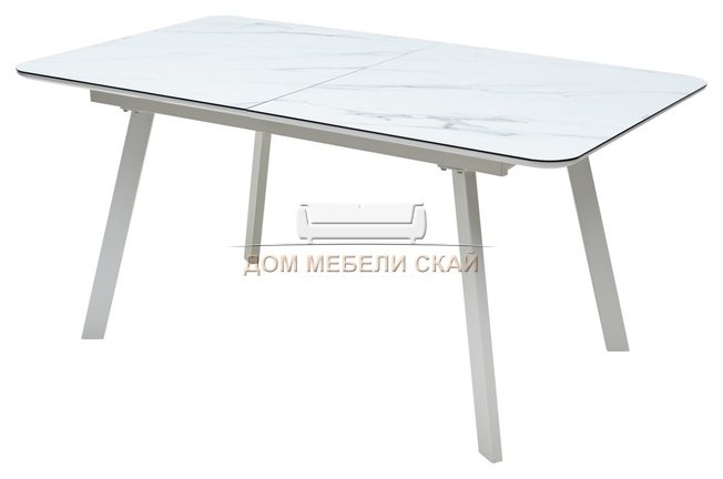 Стол обеденный раздвижной ARUBA 160, GREY-WHITE/WHITE глазурованное стекло
