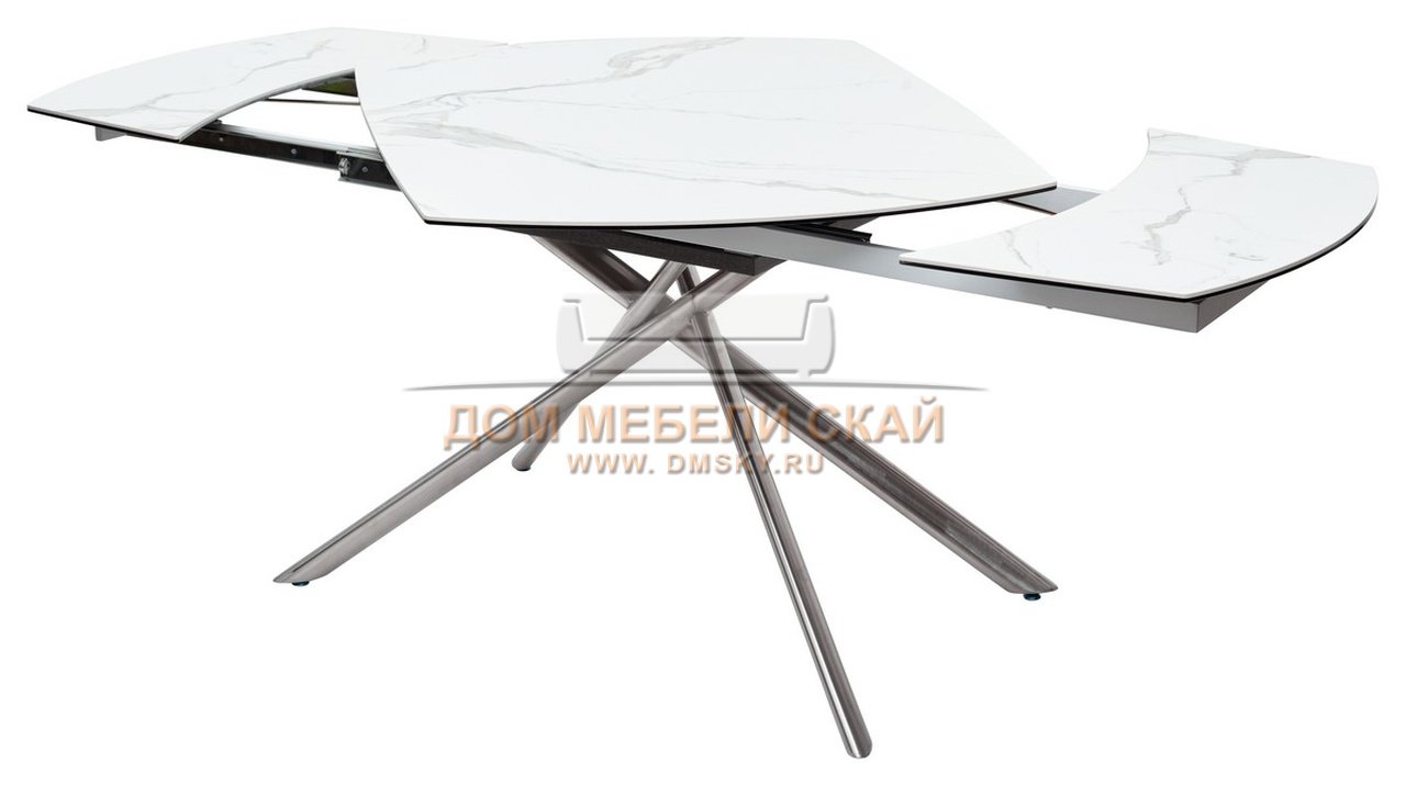 Стол обеденный раздвижной BUSHES 120, WHITE/Stainless steel