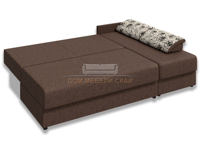 Угловой диван-кровать Лира без боковин, коричневый/рогожка/флок розы