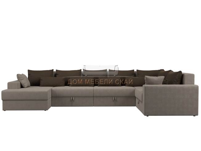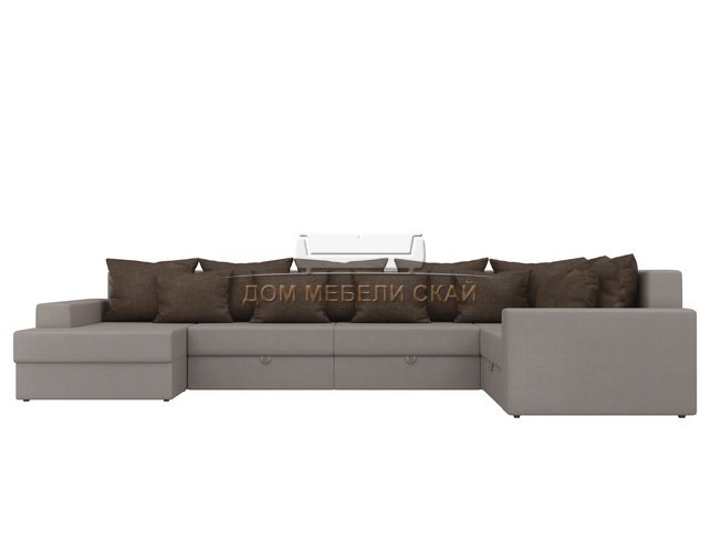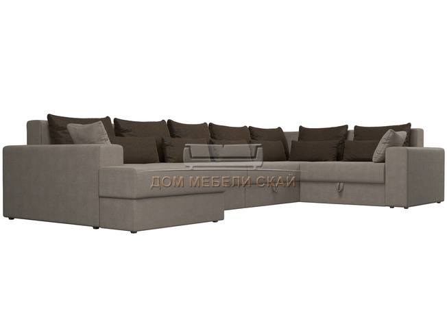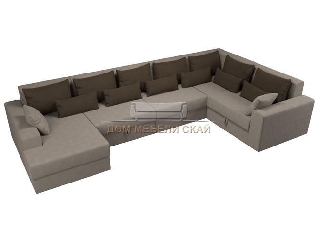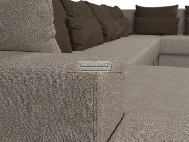 П-образный угловой диван Майами, бежевый/коричневый/рогожка
