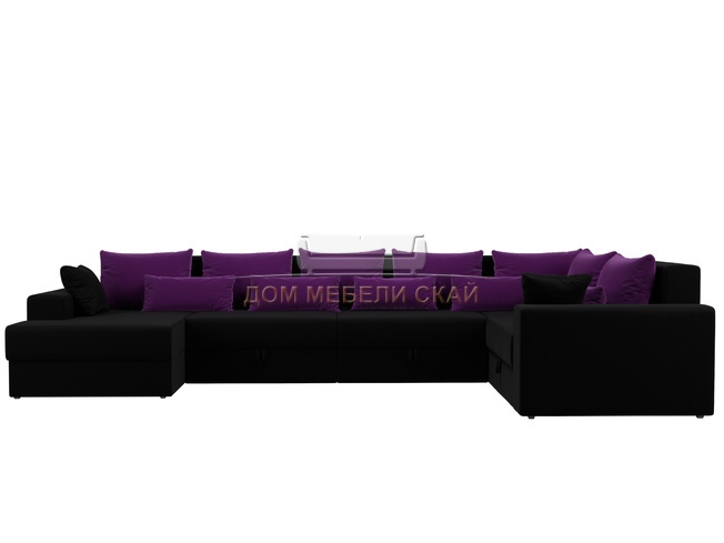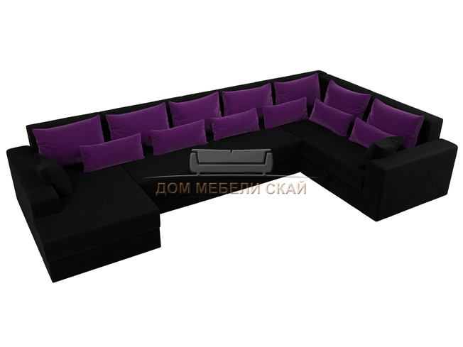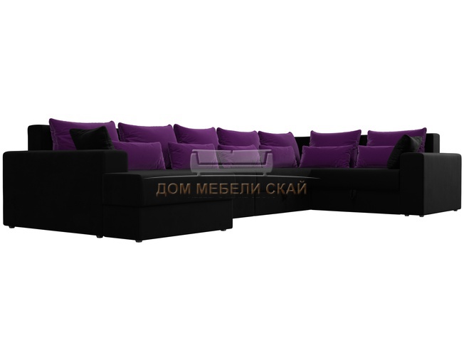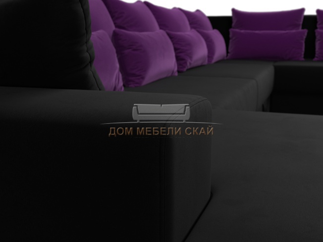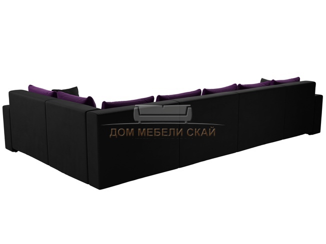 П-образный угловой диван Майами, черный/фиолетовый/микровельвет