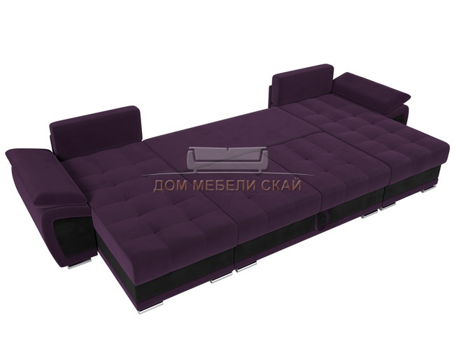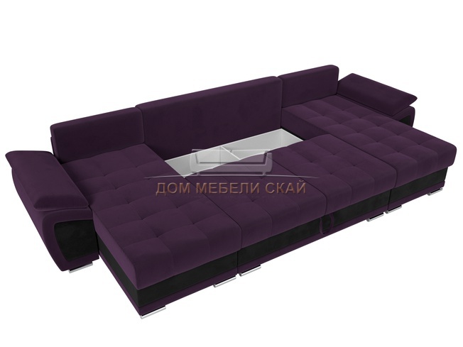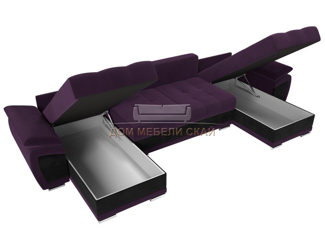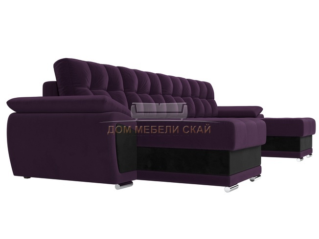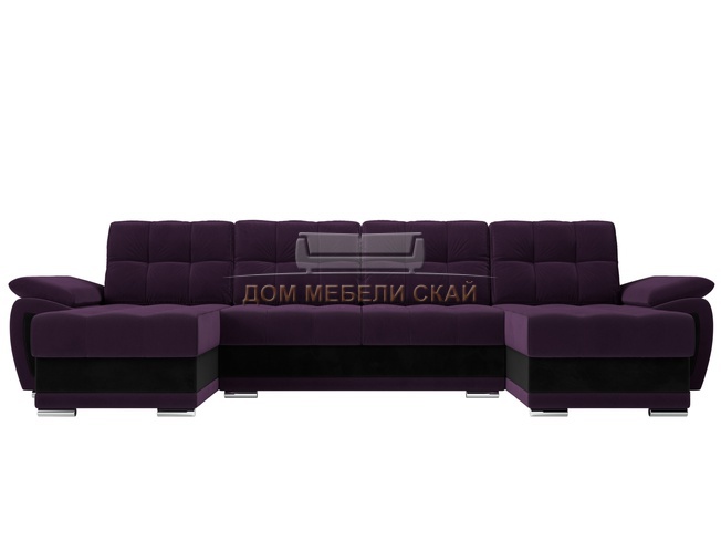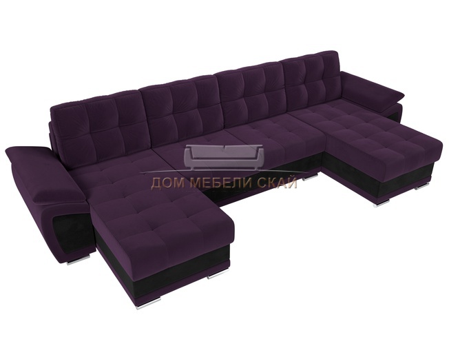 П-образный угловой диван Нэстор, фиолетовый/черный/велюр