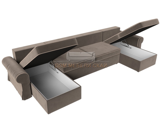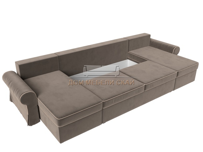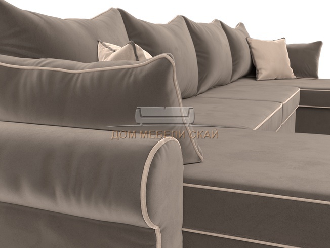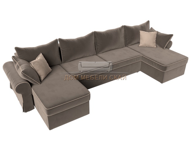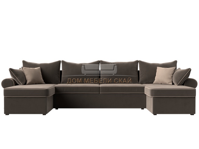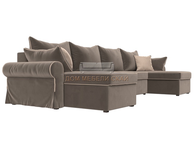 П-образный угловой диван Элис, коричневый/велюр