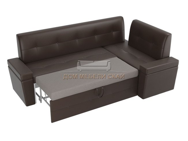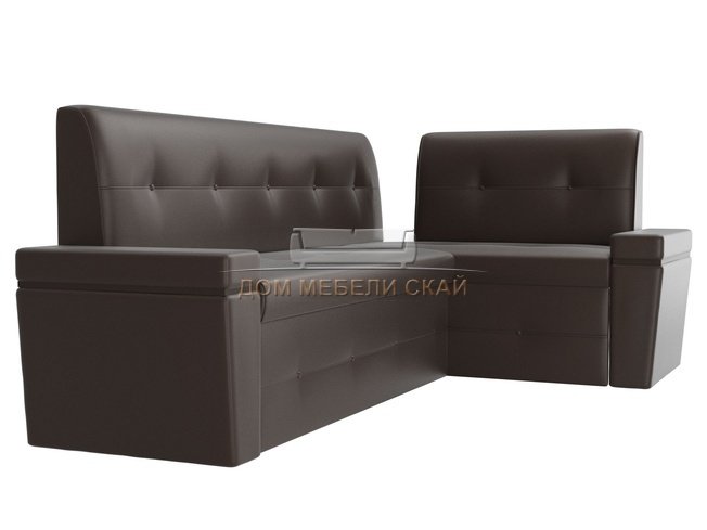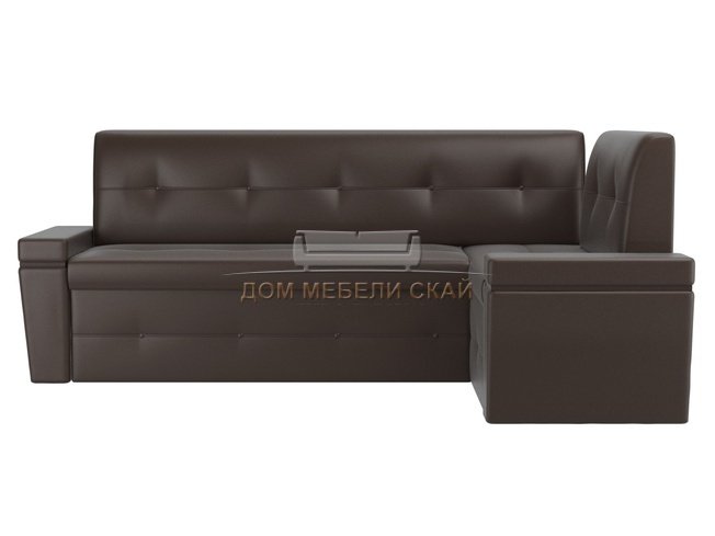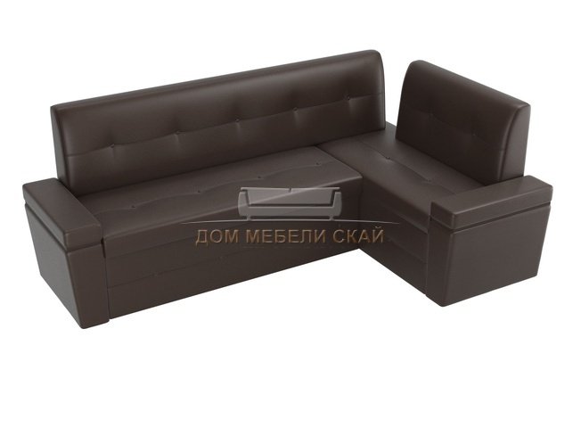 Кухонный угловой диван правый Деметра, коричневый/экокожа