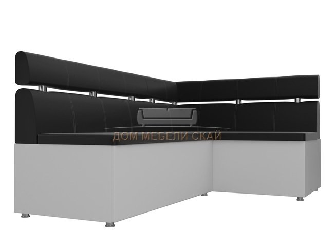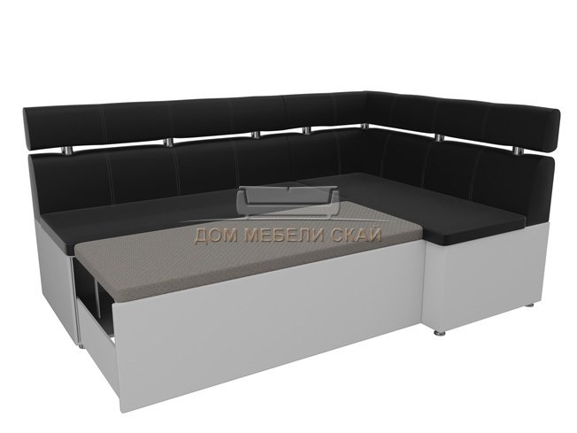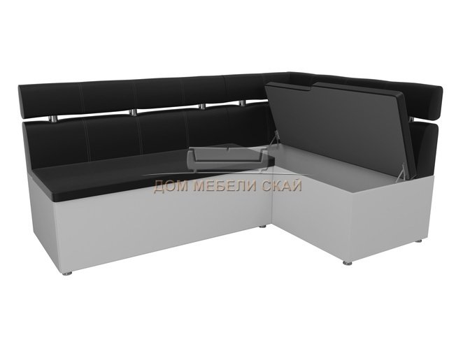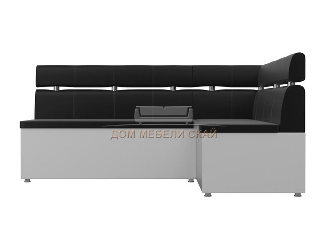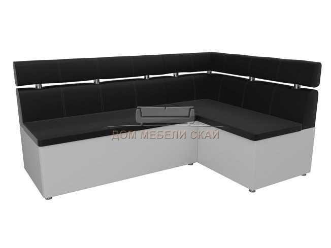 Кухонный угловой диван правый Классик, черный/белый/экокожа