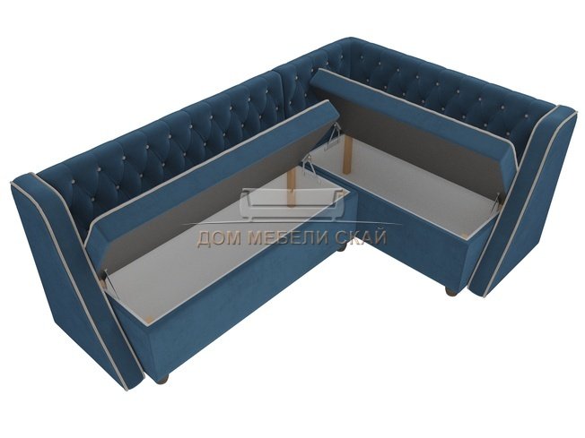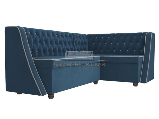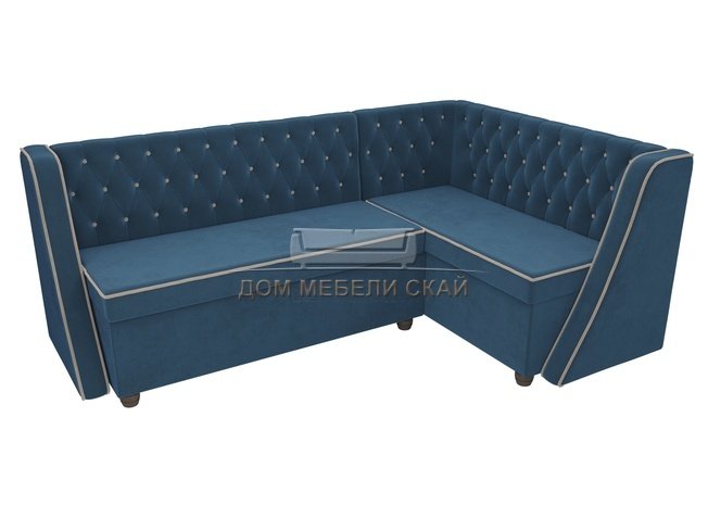 Кухонный угловой диван правый Лофт, голубой/велюр
