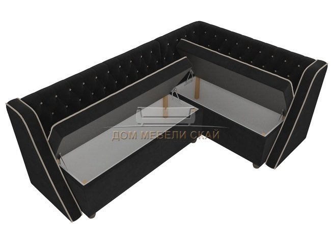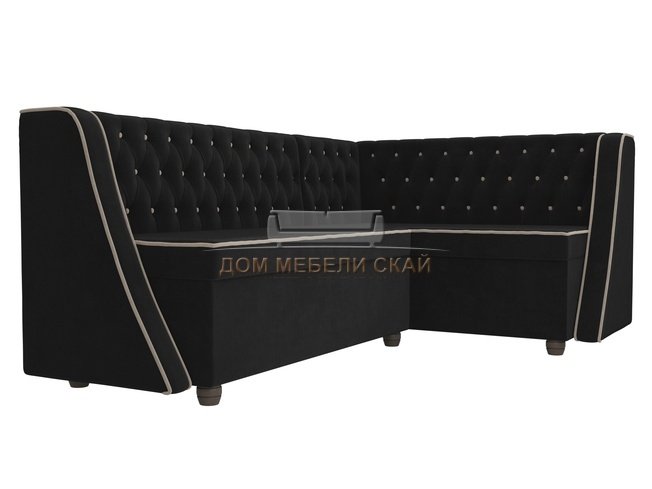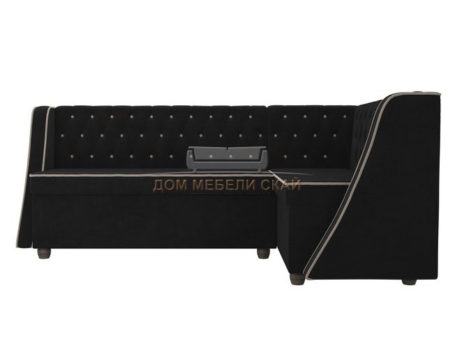 Кухонный угловой диван правый Лофт, черный/велюр