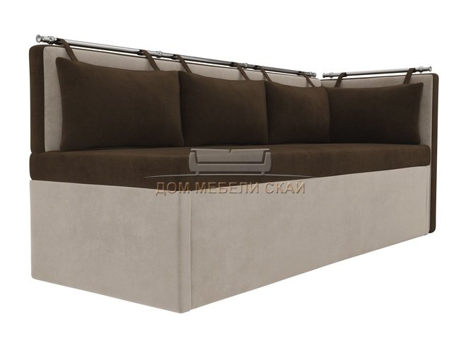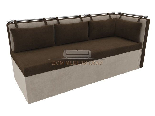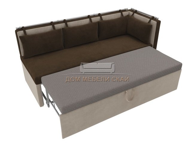Кухонный угловой диван со спальным местом правый Метро, коричневый/бежевый/велюр