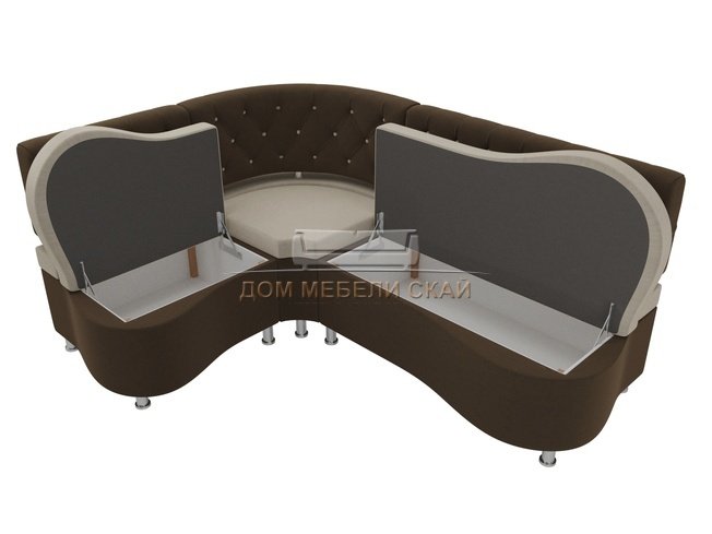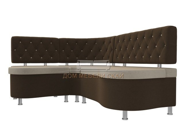 Кухонный угловой диван левый Вегас, бежевый/коричневый/микровельвет