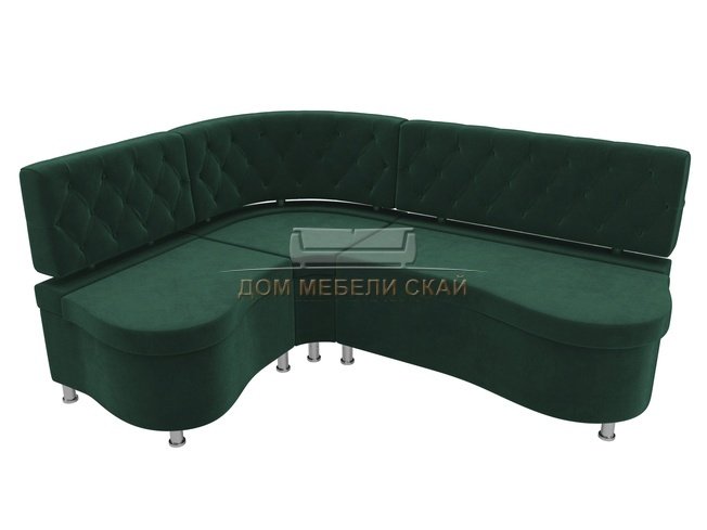 Кухонный угловой диван левый Вегас, зеленый/велюр