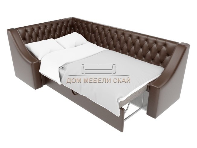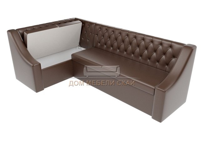 Кухонный угловой диван левый Мерлин, коричневый/экокожа