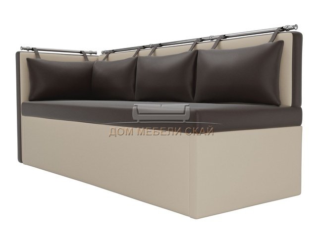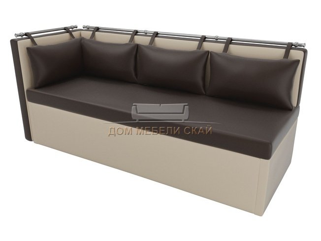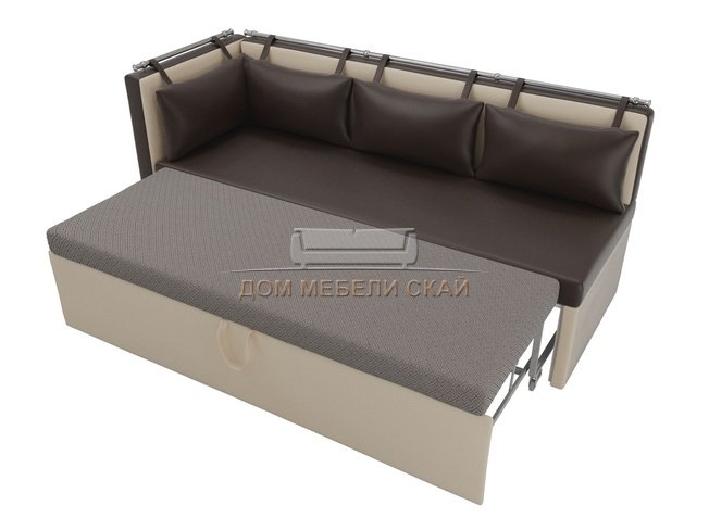 Кухонный угловой диван со спальным местом левый Метро, коричневый/бежевый/экокожа