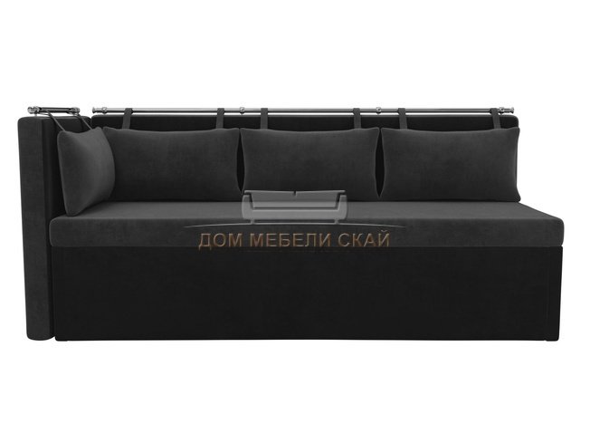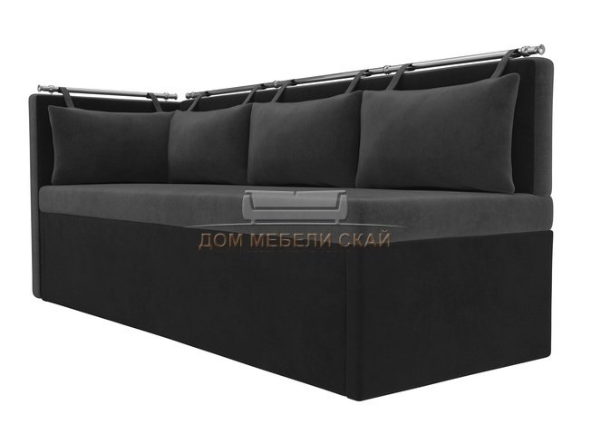 Кухонный угловой диван со спальным местом левый Метро, серый/черный/велюр
